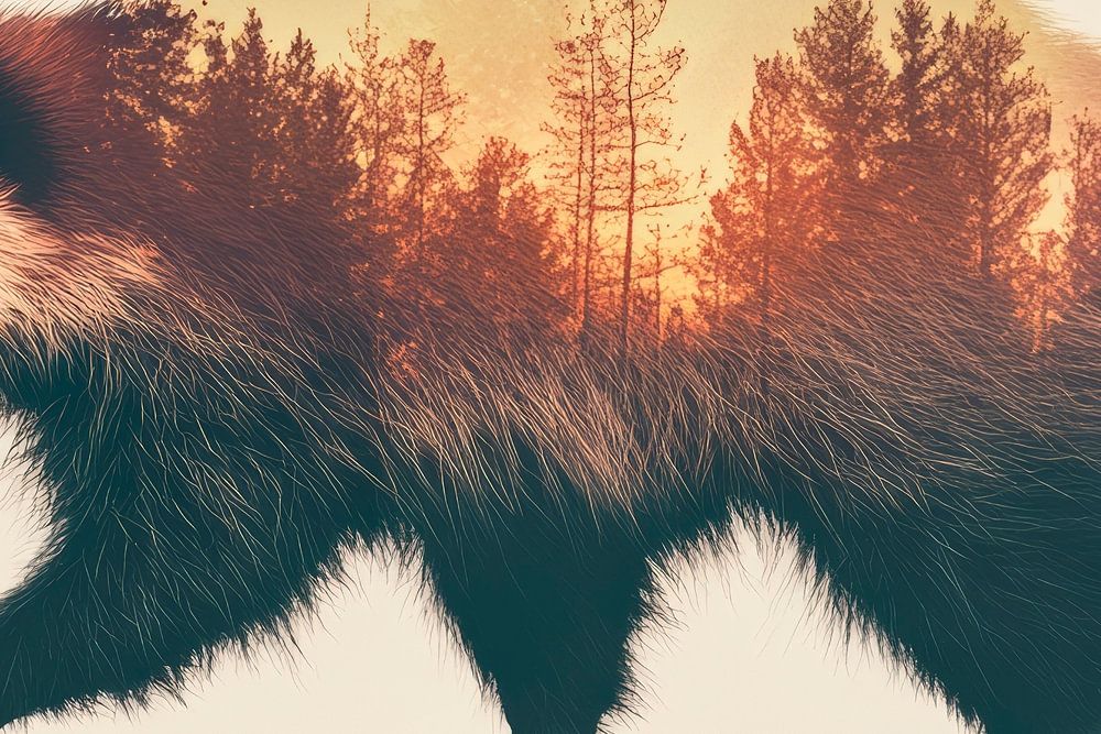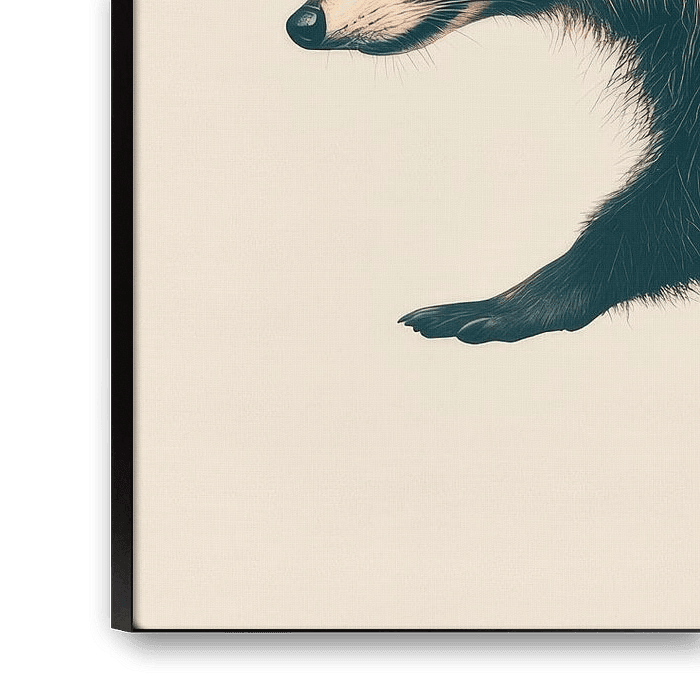 Een speelse wasbeer die harmonieus opgaat in een schilderachtig boslandschap wekt een indruk van avontuur en vrijheid. De warme kleurtinten geven het kunstwerk een uitnodigende sfeer. Het is ideaal voor in de woonkamer, creëert een gezellige band met de natuur en brengt de verbeelding van de kijker tot leven.