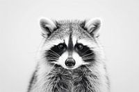 Dit betoverende zwart-wit portret van een wasbeer legt de nieuwsgierige en speelse uitdrukking van het dier perfect vast. De fijne details van de vacht en de karakteristieke donkere kringen rond de ogen maken van deze foto een uniek kunstwerk. Dit werk is ideaal voor natuurliefhebbers en kunstliefhebbers en brengt een warme en uitnodigende sfeer in elke woon- of werkruimte.