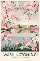 In zachte pastelkleuren bloeien tere kersenbloesems tegen de indrukwekkende achtergrond van een beroemd monument dat weerspiegeld wordt in een kalm waterlichaam. Dit harmonieuze tafereel geeft elke kamer een vredige sfeer - ideaal voor de woonkamer, waar het een uitnodigende en nostalgische toets creëert.