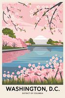 Een betoverend landschap vol delicate kersenbloesems en het majestueuze Jefferson Monument, gevangen in zachte pastelkleuren. Het harmonieuze landschap weerspiegelt de lente en voegt frisheid en elegantie toe aan elke kamer. Ideaal voor een woonkamer om een uitnodigende sfeer en een gevoel van nabijheid tot de natuur te creëren.