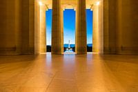 Zicht op het Washington Monument in Washington D.C. Deze foto is genomen tijdens het blauwe uurtje in de ochtend vanuit het Lincoln Memorial.