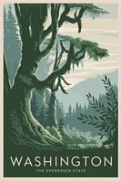Een betoverend samenspel van groene tinten brengt de majestueuze bossen van Washington bij je thuis. De gestileerde afbeelding van een oude boom en glooiende heuvels nodigt uit om te ontspannen en geeft een gevoel van nabijheid tot de natuur. Perfect voor de woonkamer om een rustgevende, op de natuur geïnspireerde sfeer te creëren.