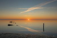 Deze foto maakte ik tijdens zonsopgang, op het moment dat het landschap nog bijna kleurloos is. Ik heb gekozen voor een strakke, rustige compositie waarin de horizon het beeld letterlijk in tweeën snijdt. Water en lucht zijn bijna gelijk, waardoor het onderscheid vervaagt en de aandacht vanzelf naar vorm en lijn gaat.
