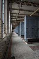 Oud mijngebouw met z'n verlaten lockers, wat ooit was een rijk verleden