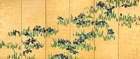 Paar vouwschermen met zes panelen, inkt en kleur op verguld papier