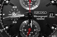 De wijzerplaat van een chronograaf horloge in 1:1 macro.