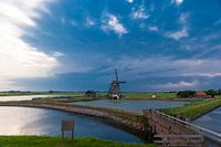 Windmill on the Dutch Island of Texel with a dark thunderstorm in the background