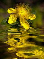 Water bloem, hypericum, gele bloem, geel, groen, water reflectie, wateroppervlak, reflecterende, reflecterende, fluorescerende, macro, bloem macro, bloem macro, schoonheid, schaduwspel, fascinerend, betoverend, decoratief, digitalart, het schilderen, collage, modern, inspirerend, water bloem, stilleven , flora, magisch, mystiek, sprankelend, bruisend water, bloemen portret, digitaal gemanipuleerde fotografie, geneeskunde, kruidentuin, gezondheid, het kalmeren, Harmonizing, inspirerend, digitalart, digitale kunst, digiart, goud, gouden , trendy kleuren goud, gouden