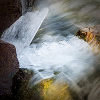 IJs wordt op de stenen gesmeten door snelstromend water.