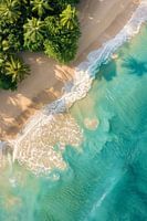 Deze prachtige foto toont een goudkleurig zandstrand met kristalhelder water en weelderige palmbomen. De harmonieuze kleuren en rustige sfeer maken dit werk ideaal voor liefhebbers van tropische stranden en natuurmotieven. Deze foto is perfect voor de woon- of slaapkamer en brengt de exotische en rustgevende schoonheid van een tropische oase in je leefruimte. Een uitstekend voorbeeld van landschapsfotografie dat de essentie van tropische idylle vastlegt.
