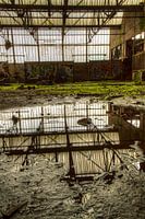 In de werkplaats van een verlaten steenkoolmijn ligt een enorme plas water, het resultaat van de afgelopen dagen regen. De reflectie nodigt gewoon uit om een compositie te maken.