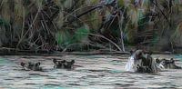Nijlpaarden uit de Okavongo river (Caprivi strook, Namibië) in een ander jasje gezet. Een combinatie van verscheidene technieken om een beetje funk in het leven van deze nijlpaarden te brengen maar ook op jouw muur.