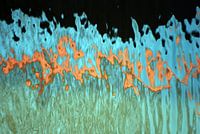 abstract water reflectie foto werk van annemie hiele in blauw oranje