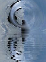 Dit werk, ontstaan uit een foto van de wolken, verbeeldt een vrouw die tot aan haar middel in het water staat.