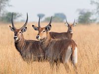 Tijdens een rondreis door Oeganda kwamen wij veel waterbokken tegen. dit is een soort Antilope die in waterrijke gebieden leven, zoals onder andere in Afrika. Met het gele dorre hoge gras geeft het een zachte tint.