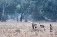 Deze waterbokken stonden in een prachtige omgeving. Dit sfeervolle bos heet Mana Pools en ligt in Zimbabwe. Heerlijk hoe ze gingen poseren en ik deze foto mocht maken.