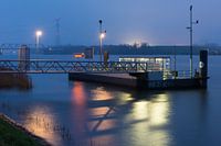 Verlaten halte van de waterbus in het blauwe uurtje tussen Dordrecht en Papendrecht met verlichting