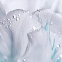Witte tulp macro-opname, met waterdruppels.