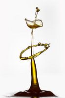 Terwijl de eerste druppel een toren creeert nadat hij het oppervlakte heeft geraakt, land de tweede druppel bovenop de toren en hierdoor ontstaat een ring. De derde raakt de bovenkant en vormt tot een kleine circel.