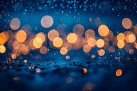 Een betoverend samenspel van zachte blauwe en gouden tinten ontvouwt zich voor je ogen. Glinsterende druppels dansen in het licht en geven de kamer een rustgevende sfeer. Dit schilderij is ideaal voor de slaapkamer en creëert een dromerige achtergrond die uitnodigt tot ontspanning en bedachtzame momenten.