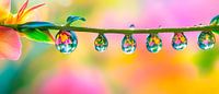 De kleurenpracht van de natuur wordt weerspiegeld in zachte, glinsterende druppels, terwijl tere bloemen bloeien in een harmonieus samenspel van roze en geel. Dit levendige kunstwerk brengt frisheid en levensvreugde in elke woonkamer, waar het de zintuigen stimuleert en een sfeer van rust en geluk creëert. Perfect voor een uitnodigende kamer!