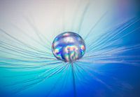 Waterdruppels op een pluis met blauwe achtergrond