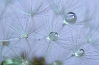 Macro foto van druppels op een uitgebloeide paardenbloem.