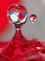 Opspattende waterdruppels met spiegeling van confetti achtergrond