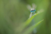 In het mystieke ochtendlicht ontvouwd zich een betoverend tafereel. Een waterjuffer, als een fee uit een sprookje, balanceert gracieus op een ranke grasspriet. Op haar voorhoofd rust een diamantachtige dauwdruppel, als een kroonjuweel dat haar schoonheid bekroont. Haar ogen houd je blik vast in een hypnotische greep. Rondom haar is de…