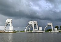 De dreigende wolkenlucht boven het water benadrukt het belang van deze infrastructuur: Nederland, met zijn lage ligging, is kwetsbaar voor wateroverlast. Dankzij zulke sluizen en stormvloedkeringen blijft het land droog, zelfs bij extreme weersomstandigheden.