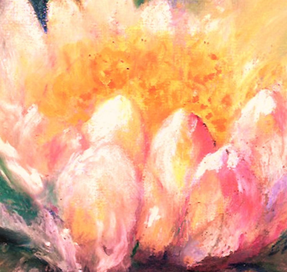 Deze waterlelie heb ik geschilderd met oliepastel. Oliepastel kan je in laagjes over elkaar werken waardoor er diepte en contrasten ontstaat. De roze witte blaadjes richten zich op naar de zon. De groenblauwe bladeren weerspiegelen in het water waar je ook kleine waterdruppeltjes ziet.