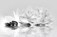 Compositie van waterlelie en kiezelstenen in zwart-wit met reflecties
