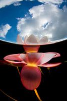Een waterlelie breekt doorheen het wateroppervlak naar de lucht.