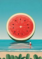 Kortom, deze surrealistische illustratie weet op meeslepende wijze de complexiteit van onderdrukte emoties en verlangens te vatten. Met een doordachte compositie en een krachtig symbolisch element in de vorm van de watermeloen, prikkelt het kunstwerk de verbeelding en nodigt het uit tot introspectie.