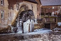 IJs op de raderen van de watermolen in Wijlre (Heuvelland, Limburg).