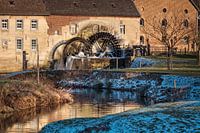 De raderen van de Watermolen in Wijlre op een koude doch zonnige Februari winter dag (Limburg, Nederland)