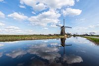 Hollandse landschappen met water en mooie reflecties van de wolken in het water een typisch Hollands landschapje.