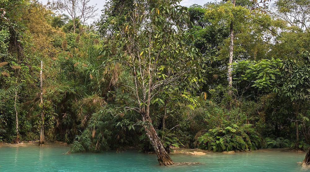 De Kuang Si waterval met de vele plateaus is een bekende toeristische attractie in Laos. Het ligt een kleine 30 kilometer onder Luang Prabang.
