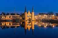 De Waterpoort is het symbool van de Friese stad Sneek en vormt de verbinding tussen het water van De Kolk en de Stadsgracht. Het is begin 18e eeuw gebouwd en bestaat uit twee torens met daartussen een poortwachter woning. Deze foto is bij avondlicht genomen.