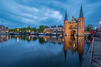 Een prachtige nachtopname van de imposante waterpoort in Sneek, Friesland