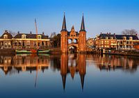 De Waterpoort is het symbool van de Friese stad Sneek en vormt de verbinding tussen het water van De Kolk en de Stadsgracht. Het is begin 18e eeuw gebouwd en bestaat uit twee torens met daartussen een poortwachter woning. Deze foto is bij zonsondergang genomen.
