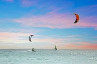 Watersport op de Caribbische Zee bij Aruba met zonsondergang