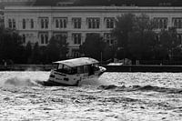 Een watertaxi raast over de golven van de Maas in Rotterdam, met een snelle bocht draait hij naar zijn bestemming. De snelheid is bevroren in de tijd, de rond spetterende druppels verraden hoe hard dit werkelijk gaat. Deze mooie zwart-wit registratie laat goed zien hoe spectaculair een ritje in dit snelle vervoermiddel kan…