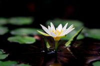Een tropisch plantje dat boven de waterspiegel uitsteekt. Met die blaadjes links en rechts lijkt het net op watertrappen tijdens het zwemexamen om zonder gebruik van handen boven water te blijven.