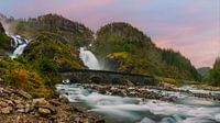 Een 16:9 foto bij de Latefossen, een waterval in de gemeente Odda in de provincie Hordaland, Noorwegen.