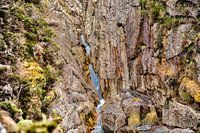 Tussen de rotsen in de bergen van North Glen Sannox is deze prachtige waterval te zien die zich een weg baant naar beneden.