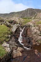 Prachtig uitzicht op de waterval en de bergen in de zomer, boven Seathwaite en Styhead Pass, in het Lake District National Park in Cumbria, Engeland. Engelse landschaps- en reisfotografie.