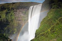 Water valt van grote hoogte naar beneden bij de waterval Skogafoss