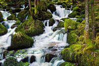 Deze waterval heb ik gefotografeerd in het Zwarte Woud in Duitsland (Schwarzwald). De zonnestralen die door de bomen schijnen laten het mos oplichten en creëren een sprookjesachtig plekje.
