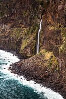 Deze mooie natuurfoto met donkere aardse tonen neemt je mee naar de Seixal waterval aan de noordelijke kustlijn van het eiland Madeira.